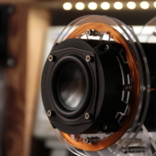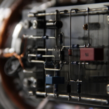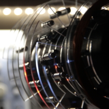 auburn scour is an electromagnetic sound and light sculpture, featuring a copper coil wrapped around a loudspeaker, picking up variations in the magnetic field of the driver and feeding it back into the audio signal. The compositional algorithm is based upon two generative rhythmical sequencers; one for the main melodic voice, and the other to chop the electromagnetic signal into musical, rhythmic pulses. An additional four-voice chord generator creates a backdrop of sparse, harmonic sweeps dependent on the notes produced by the main voice.