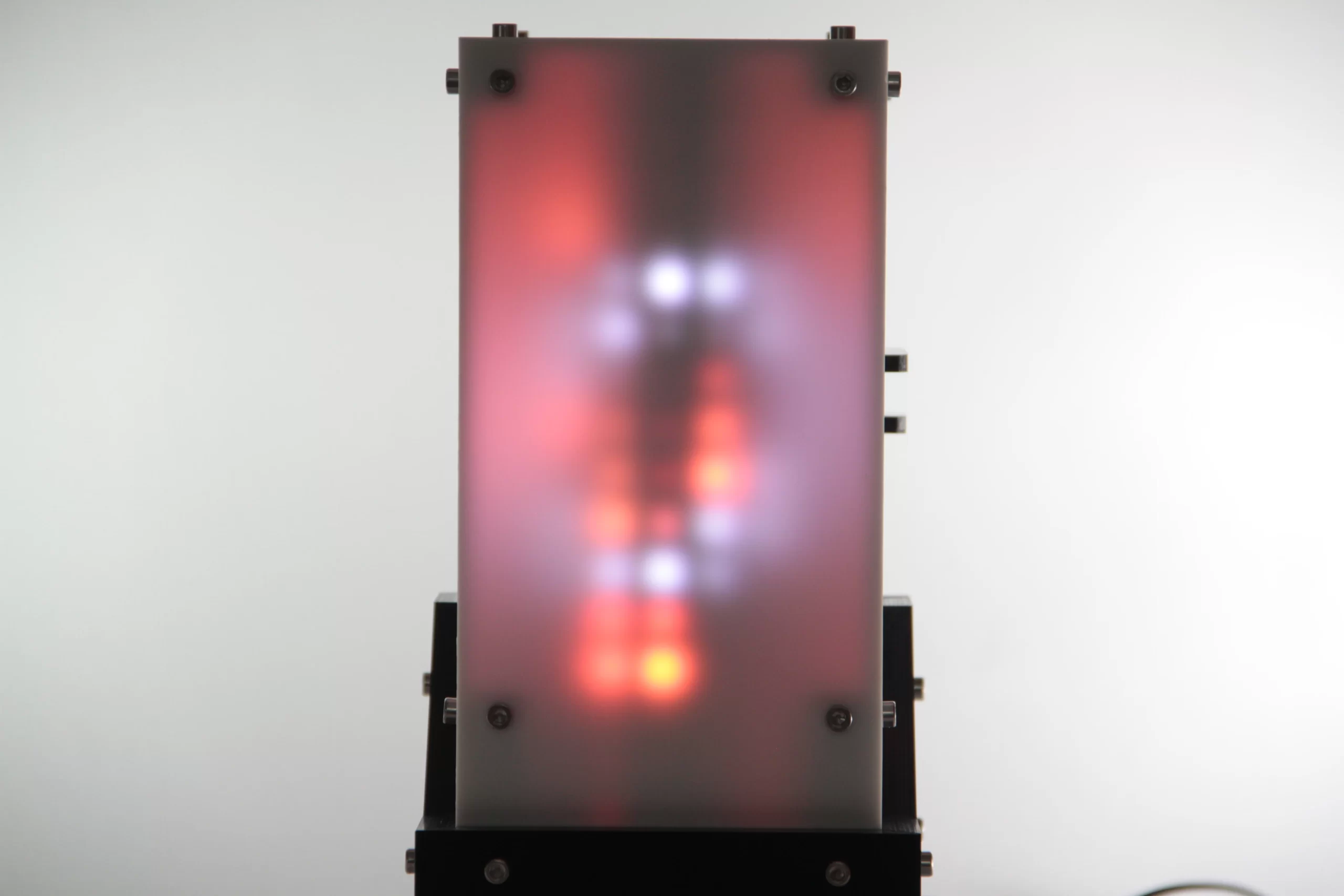 aureolic trace utilizes algorithmic voice leading to create evolving arpeggiated sequences of intervallic relationships. It also contains a diffused LED matrix, producing reactive patterns of light tied to the amplitude of the audio signal. This work was made over a period of ten days, deliberately in search of a simpler approach to design and function.