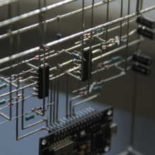dravb consists of an 8×8 LED matrix and two proximity sensors. It uses two ESP8266 microcontrollers as ADCs to map hand movement to the matrix, but could also be used for musical purposes. I wanted it to have the look and feel of an old analog computer, with a clunky interface and dubious visual feedback.