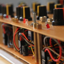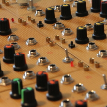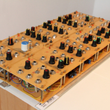 This synthesizer was built between autumn 2014 and spring 2015. All modules are +/- 12V with a signal voltage of 10Vpp around ground. Most of the circuits are unashamedly stolen from Ray Wilson’s www.musicfromouterspace.com, while the four VCOs come in two different variants by Thomas Henry. Both faceplates and circuit boards were hand soldered perfboards, given my reluctance to enter the world of metal working at the time.